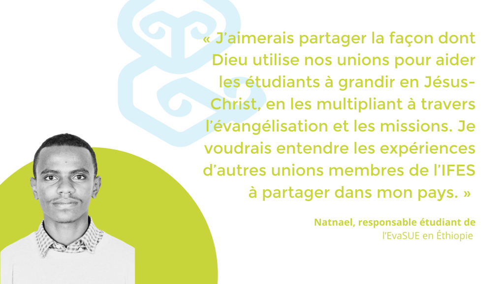 En Éthiopie, le témoignage étudiant a été ralenti par la fermeture de certaines universités à cause de l’instabilité politique, du manque de lieux où adorer et du petit nombre d’équipiers, relatif au nombre d’unions. Pourtant, Natnael voit la main de Dieu à l’œuvre : les étudiants sont très engagés dans leurs petits groupes, les unions organisent des assemblées et missions hebdomadaires, des sommets nationaux permettent aux responsables et mobilisateurs de mission de garder contact sur le plan national.