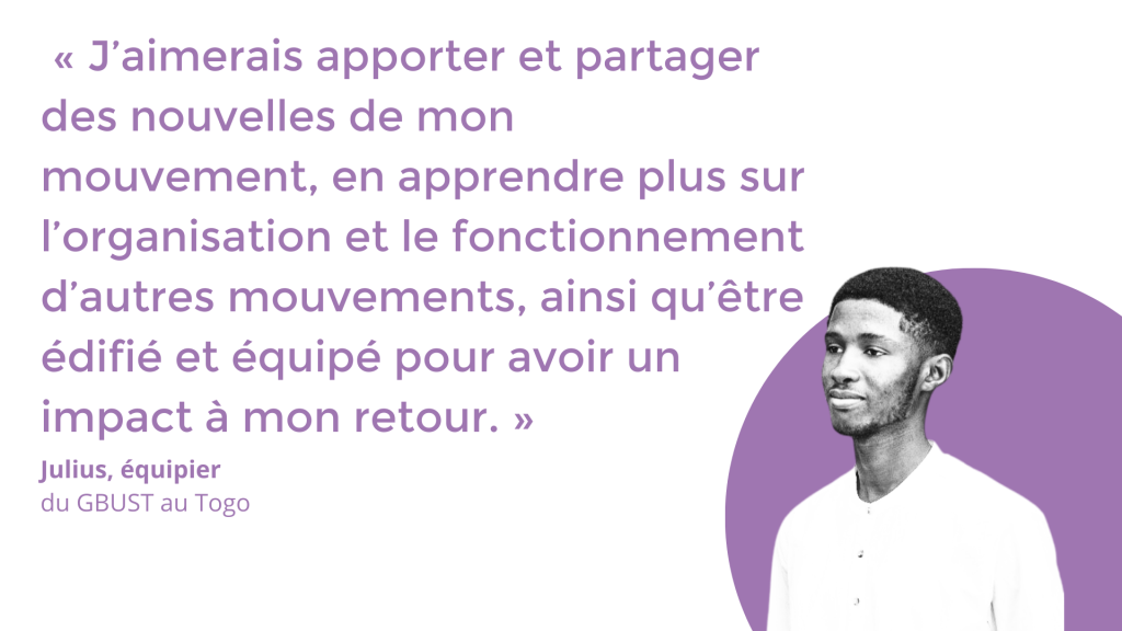 L’organisation de Julius a une véritable vision pour la croissance : mettre en place des groupes dans de nouveaux types d’institutions, acheter un terrain pour construire un bâtiment pour le ministère et se concentrer sur les petits groupes puisque les grands rassemblements sont encore interdits. Pour les étudiants et élèves dans l’incapacité de participer à leurs groupes, ils ont aussi développé un modèle de « cellules [locales] mixtes » qui « garde tout le monde en lien avec la parole de Dieu dans la communion et la prière, et qui assure une meilleure vitalité au mouvement ». Toutes ces choses créent de nouvelles opportunités et défis, qu’il aimerait partager et discuter avec d’autres à l’Assemblée mondiale.